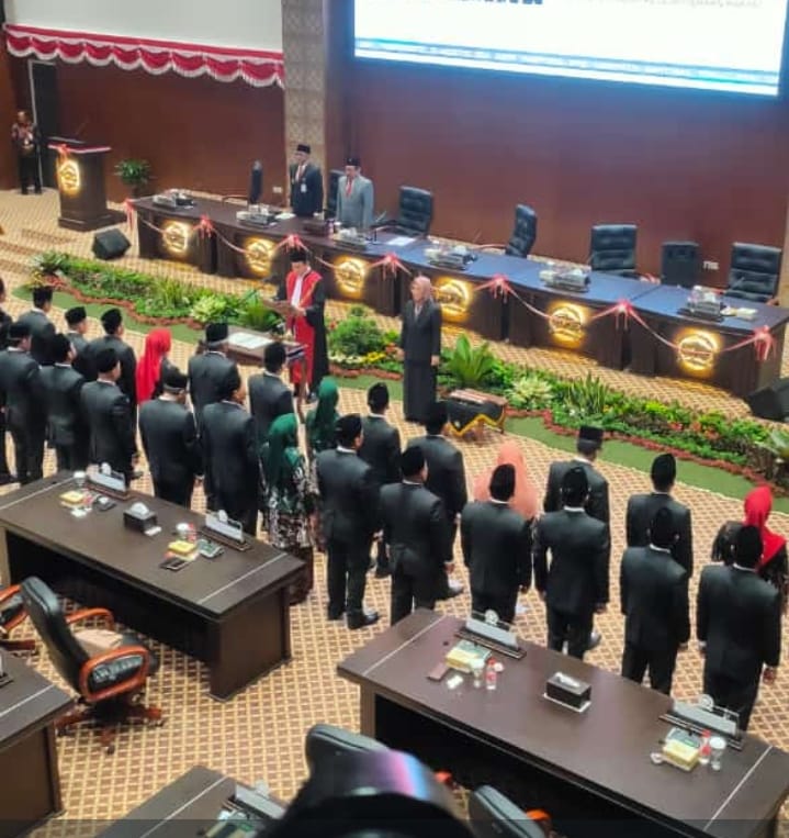 PURWKERTO-50 orang Anggota DPRD Banyumas terpilih, resmi menjabat pada masa jabatan 2024-2029. Hal itu ditetapkan setelah pengambilan sumpah dan janji Selasa (20/08/2024).Pelantikan dan pengucapan sumpah/janji jabatan berlangsung di Gedung DPRD Banyumas yang baru di Jalan Bung Karno, komplek Menara Teratai Purwokerto.