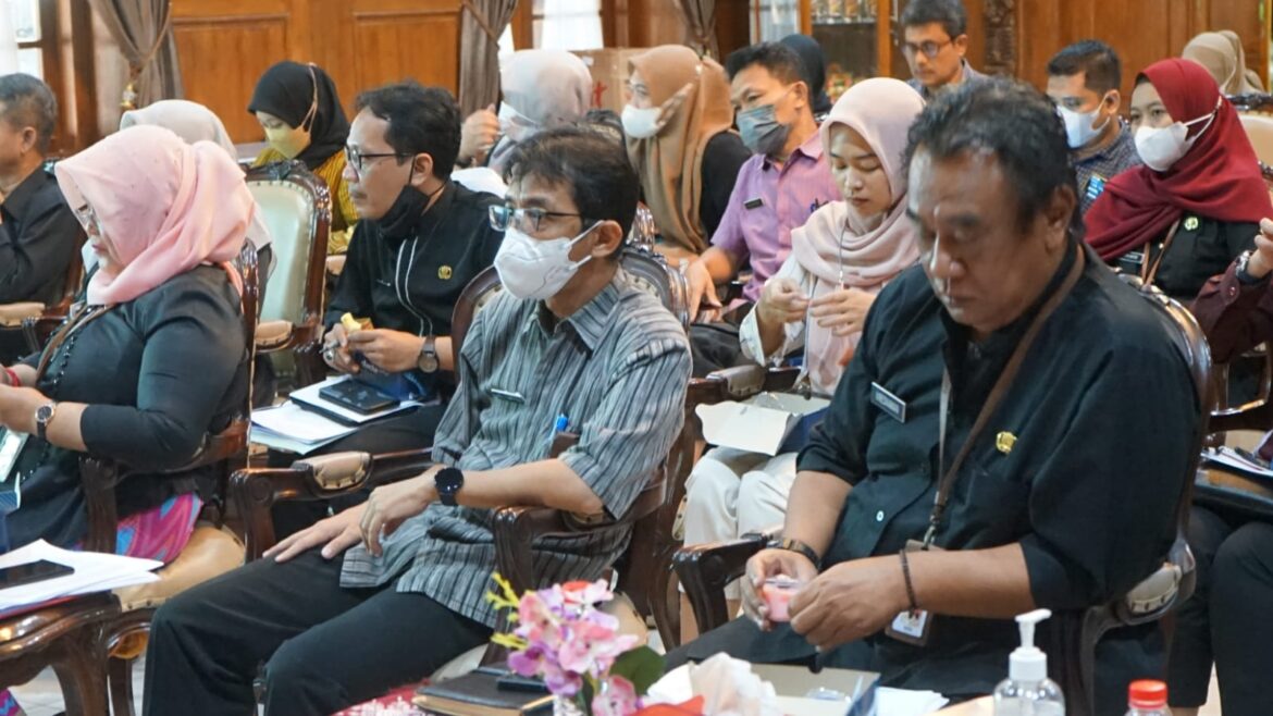 PURWOKERTO-Bupati Banyumas Achmad Husein mempimpin rapat Tim Pengendali Inflasi Daerah, Kamis (15/9) di Ruang Joko Kahiman. Rapat tersebut dihadiri oleh Deputi Kepala Perwakilan Bank Indonesia Mursidi, kepala OPD Kabupaten Banyumas, Bapenda, dan BPS Kabupaten Banyumas. Rapat tersebut membahas terkait inflasi yang terjadi di Kota Purwoketo.