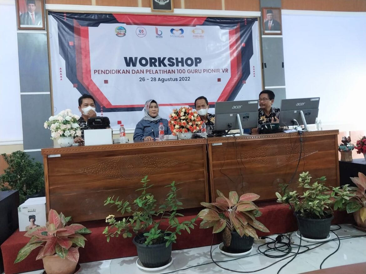 PURWOKERTO – Kepala Dinas Pendidikan Kabupaten Banyumas Irawati, SE menilai Banyumas Calakan dan Milealab memajukan pendidikan di Banyumas. Hal tersebut disampaikan saat membuka Diklat 100 Guru Pionir Virtual Reality (VR) Banyumas di SMPN 3 Purwokerto. Diklat tersebut akan dilaksanakan selama tiga hari mulai Jumat – Minggu, 26 – 28 Agustus 2022 yang diikuti oleh 100 Guru SMP se-Kabupaten Banyumas.