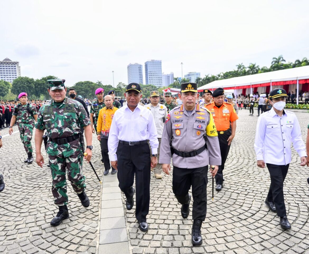 JAKARTA – Pemerintah, TNI, Polri dan stakeholder terkait lainnya menggelar Apel Gelar Pasukan Operasi Lilin 2022 terkait pengamanan perayaan Natal dan Tahun Baru (Nataru) di Lapangan Monas, Jakarta, Kamis, 22 Desember 2022.