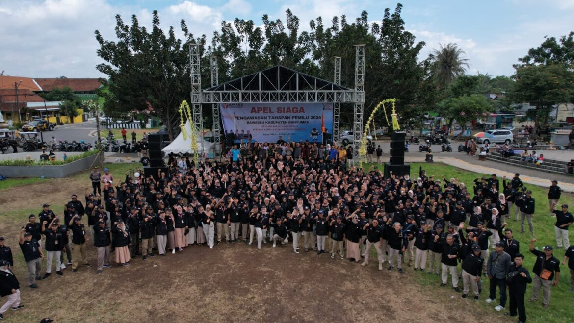 BANYUMAS– Badan Pengawas Pemilihan Umum (Bawaslu) Kabupaten Banyumas menggelar apel siaga pengawasan tahapan Pemilu 2024 di Alun-Alun Banyumas, Minggu (4/2). Seluruh jajaran Pengawas Pemilu dari Panwaslu Kecamatan dan Panwaslu Kelurahan/Desa se-Kabupaten Banyumas hadir dalam gelaran apel ini.