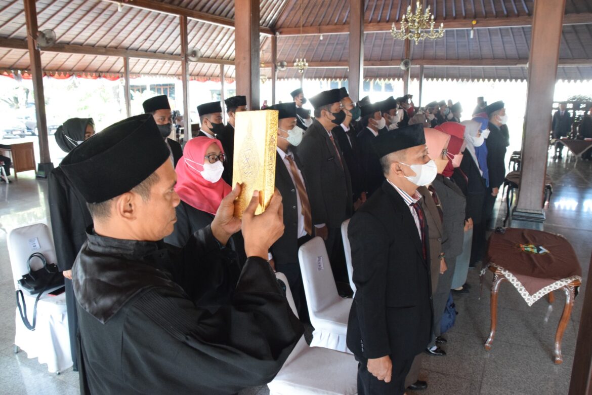 BANYUMAS-Asisten Administrasi Umum Sekda Banyumas Agus Nur Hadie melantik 52 jabatan fungsional di wilayah Kabupaten Banyumas, Kamis 9 Maret 2023 di Pendopo SiPanji Purwokerto. Pelantikan pejabat fungsional ini sebagai salah satu upaya mendorong penyederhanaan birokrasi.