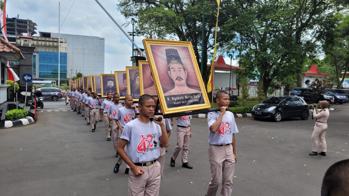 BANYUMAS-Prosesi Kirab Pusaka Hari Jadi ke 452 Kabupaten Banyumas akan digelar Minggu 19 Februari 2023. Empat pusaka berupa tombak Kiai Genjring, keris Kiai Gajah Endro, Keris Kiai Nalapraja, dan Keris Kiai Sempana Bener, akan dipertontonkan kepada masyarakat saat Prosesi Kirab Pusaka tersebut. Kirab pusaka juga akan diikuti kirab ribuan abdi praja dari semua OPD termasuk Camat beserta jajaranya.