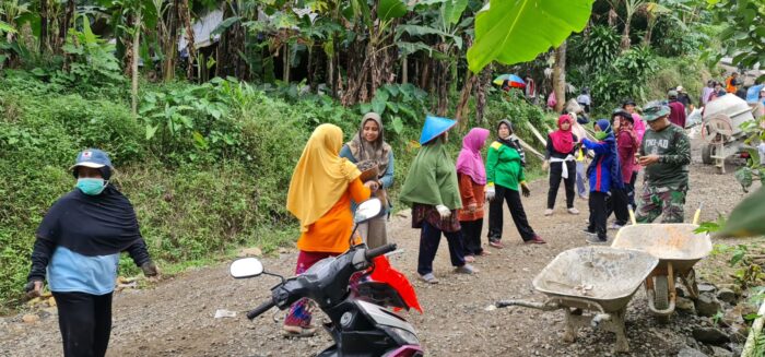 Selain merehab dua rumah, TMMD juga meningkatkan pemeliharaan jalan. Selain warga yang kerja bakti, terlihat Balqis Fadillah, Anggota DPRD Banyumas, yang ikut memunguti batu, kerja bakti.